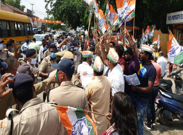एसपी देहात स्वतंत्र कुमार, पुलिस उपाधीक्षक डीसी ढौंडियाल, कोतवाली प्रभारी निरीक्षक शिशुपाल सिंह नेगी सहित तमाम उप निरीक्षक कांग्रेस कार्यकर्ताओं को घेरकर खड़े हो गए। इन्हें रोकने के लिए पहले से रस्सी बांधी गई थी। जिसे पार करने की कोशिश कांग्रेस कार्यकर्ताओं ने की, जिस पर पुलिस ने इन्हें पीछे धकेल दिया। कांग्रेस कार्यकर्त्ताओं ने नारा लगाया कि जब जब भाजपा डरती है पुलिस को आगे करती है
