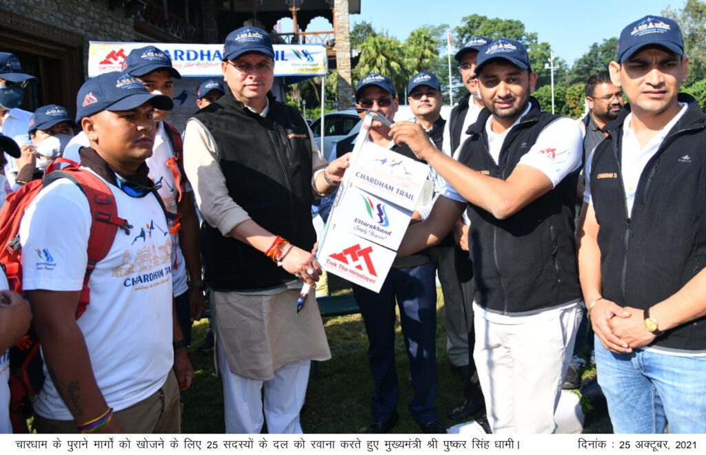 मुख्यमंत्री पुष्कर सिंह धामी ने सोमवार को मुख्यमंत्री आवास से चारधाम के पुराने मार्गों को खोजने के लिए 25 सदस्यों के दल को हरी झंडी दिखाकर रवाना किया।