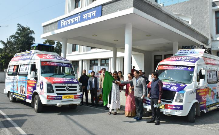 मुख्य निर्वाचन अधिकारी श्रीमती सौजन्या ने सोमवार को सचिवालय में मतदाता जागरूकता के लिये मतदाता जागरूकता सचल वाहनों (वोटर अवेयरनेस वैन) को रवाना किया।