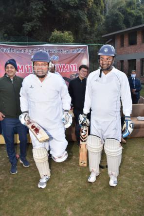मंगलवार को अभिमन्यु क्रिकेट अकादमी देहरादून में मुख्यमंत्री- XI एवं भाजयुमो – XI के बीच मैत्री क्रिकेट मैच खेला गया। मुख्यमंत्री XI ने यह मैच 04 रन से जीता। मुख्यमंत्री श्री पुष्कर सिंह धामी की कप्तानी में मुख्यमंत्री XI की टीम ने 7 ओवर के मैच में पहले बल्लेबाजी करते हुए 02 विकेट खोकर 49 रन बनाए। मुख्यमंत्री श्री पुष्कर सिंह धामी ने नाबाद 14 रन बनाए। लक्ष्य का पीछे करते हुए भाजयुमो के राष्ट्रीय अध्यक्ष तेजस्वी सूर्या के नेतृत्व के भाजयुमो – XI निर्धारित 7 ओवर में 01 विकेट खोकर 45 रन बना पायी।