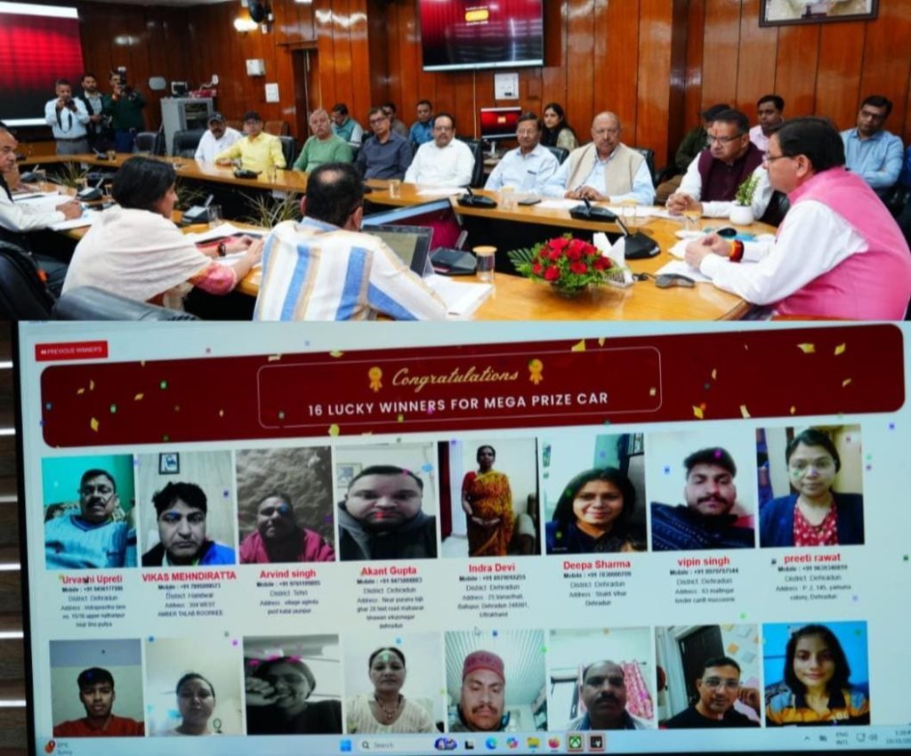 मुख्यमंत्री पुष्कर सिंह धामी ने राज्य स्थापना रजत जयंती समारोह का शुभारंभ करते हुए शुक्रवार को सचिवालय में ‘बिल लाओ, ईनाम पाओ’ के अंतर्गत मेगा लकी ड्रॉ निकाला। राज्य कर विभाग, उत्तराखंड द्वारा आयोजित इस कार्यक्रम में कुल 1888 लकी ड्रॉ विजेता चुने गए। नैनीताल जनपद की सोनिया और टिहरी जनपद के जसपाल रावत ने प्रथम विजेता के रूप में एक-एक इलेक्ट्रिक कार जीती